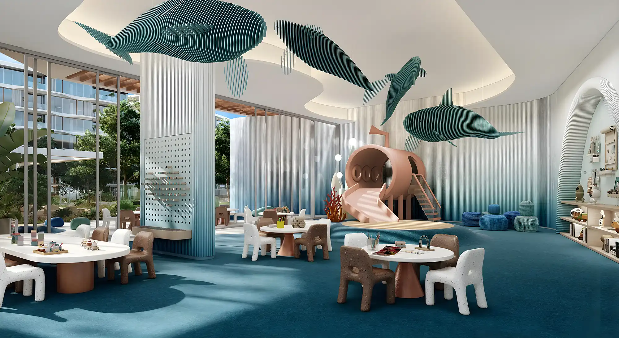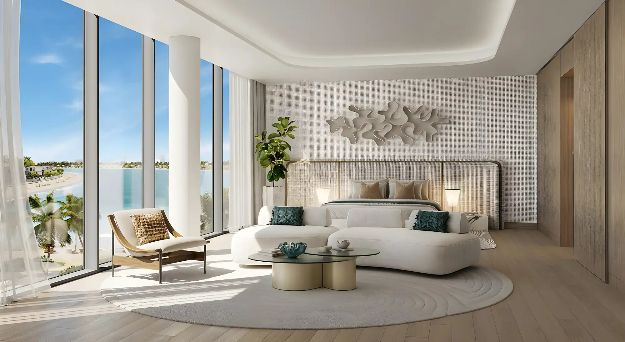 Palm Central reflects a modern architectural approach inspired by the surrounding ocean environment. The design integrates expansive glass façades, open terraces, and natural materials that enhance the connection between indoor living and the surrounding waterfront. The residences are crafted to maximize panoramic views of the sea and skyline while ensuring privacy and comfort for residents. Spacious layouts and refined finishing standards emphasize a contemporary lifestyle aligned with Dubai’s high-end residential market. This architectural vision positions Palm Central as a landmark residential development within Palm Jebel Ali’s new skyline.