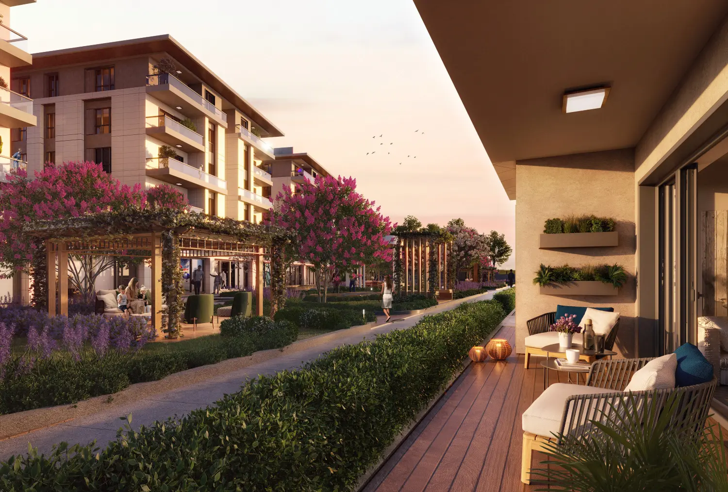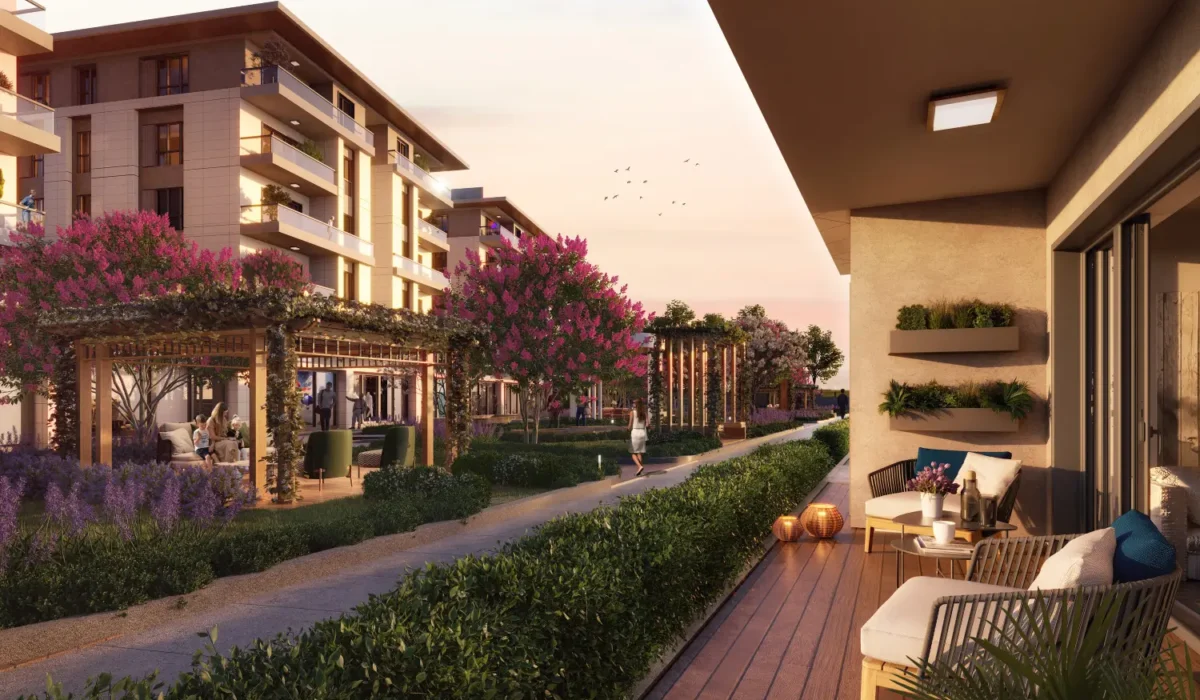 The project is built around the concept of living in harmony with nature, where landscaped areas play a central role in daily life. The development includes extensive green spaces, walking paths, and outdoor areas designed to create a calm and refreshing environment for residents. According to the project visuals, more than 4,000 square meters are dedicated to landscaping, allowing residents to enjoy outdoor living without leaving the project. This integration of nature enhances both lifestyle quality and long-term residential appeal .
