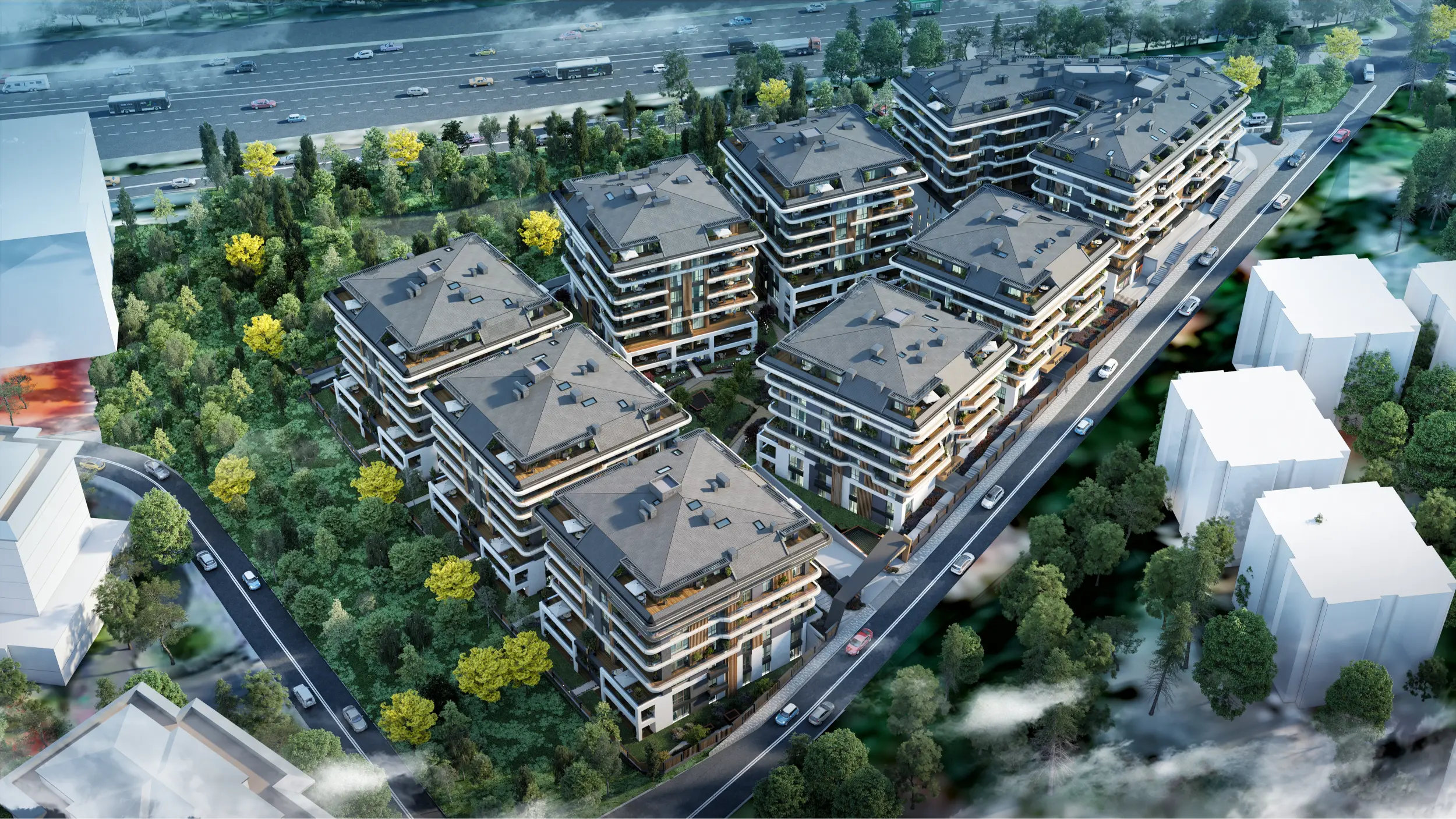 Senfoni Etiler introduces a horizontal architectural concept, a rare feature in central Istanbul that prioritizes space, privacy, and livability. Instead of dense vertical towers, the project is designed with low-rise structures that create a balanced residential environment, enhancing both lifestyle quality and long-term asset value. The project offers a wide range of unit types, from efficient 1+1 and 2+1 apartments to spacious family residences from 3+1 up to 6+1, including garden-level units and roof duplexes. Large balconies and private terraces are integrated into the design, increasing demand potential for both end-users and tenants. High construction standards, carefully selected materials, and smart spatial planning ensure that each unit delivers durable quality—an essential factor for capital appreciation in off-plan investments.